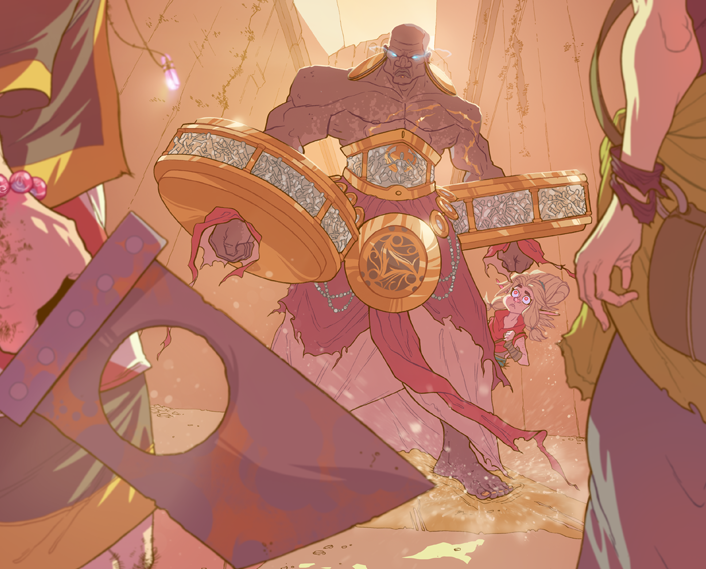 Taking place in an sci-fantasy world of endless sand and strange civilizations, this comic tells the story of a young girl and her monk companion as they travel between cities. The gorgeous art instantly reminded me of the RPG Numenera. It conveying the style of advanced technology and primitive know-how which combines into a fairly impressive whole. I can definitely imagine the characters from our Numenera game walking through one of these cities purchasing strange artifacts from a vendor in one of its panels. Plus, it brings with it a strange mythology that I can’t wait to learn more about as the story unfolds. Â