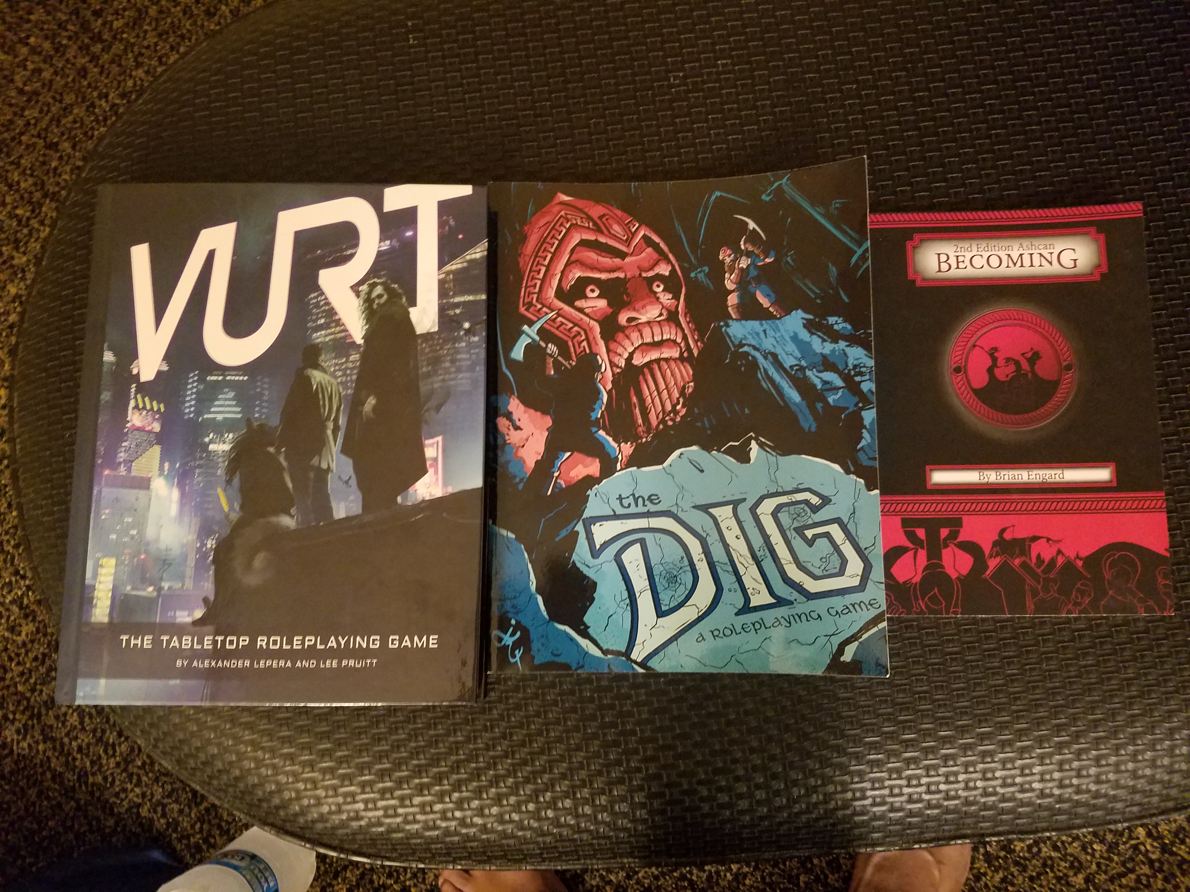 The final picture isn’t a book but art prints. From a studio called Broken Dice games. They were selling art prints to help finance a RPG they are working on called Naudan Chronicles. And, after looking at the Gorgeous art and seeing how passionate they were about the world they were creating, I had to buy some prints. Plus, that Stone Gollum art will look really good on my wall. I wish them all the luck on their project and will probably back them when they finally get their Kickstarter going sometime next year.