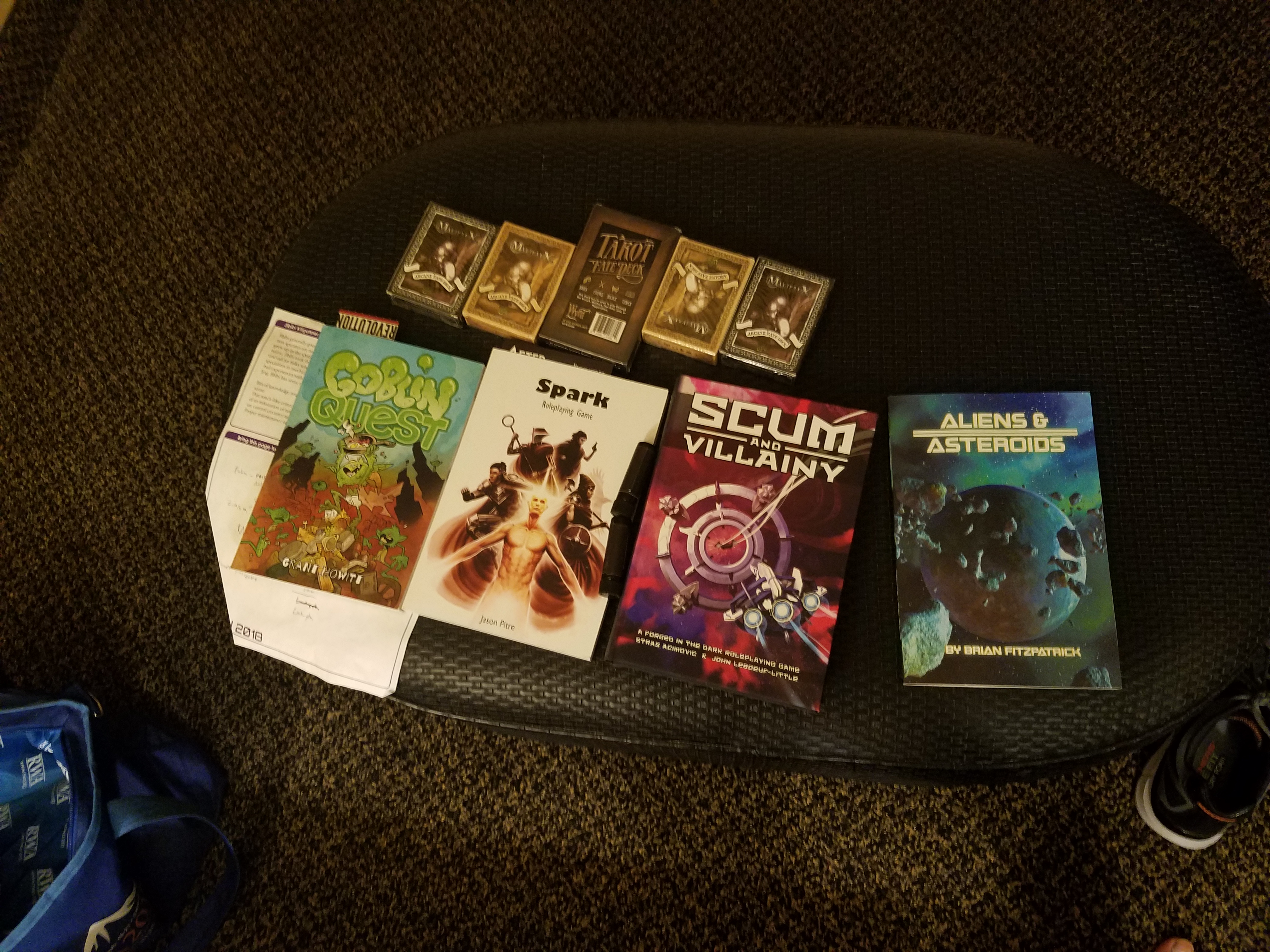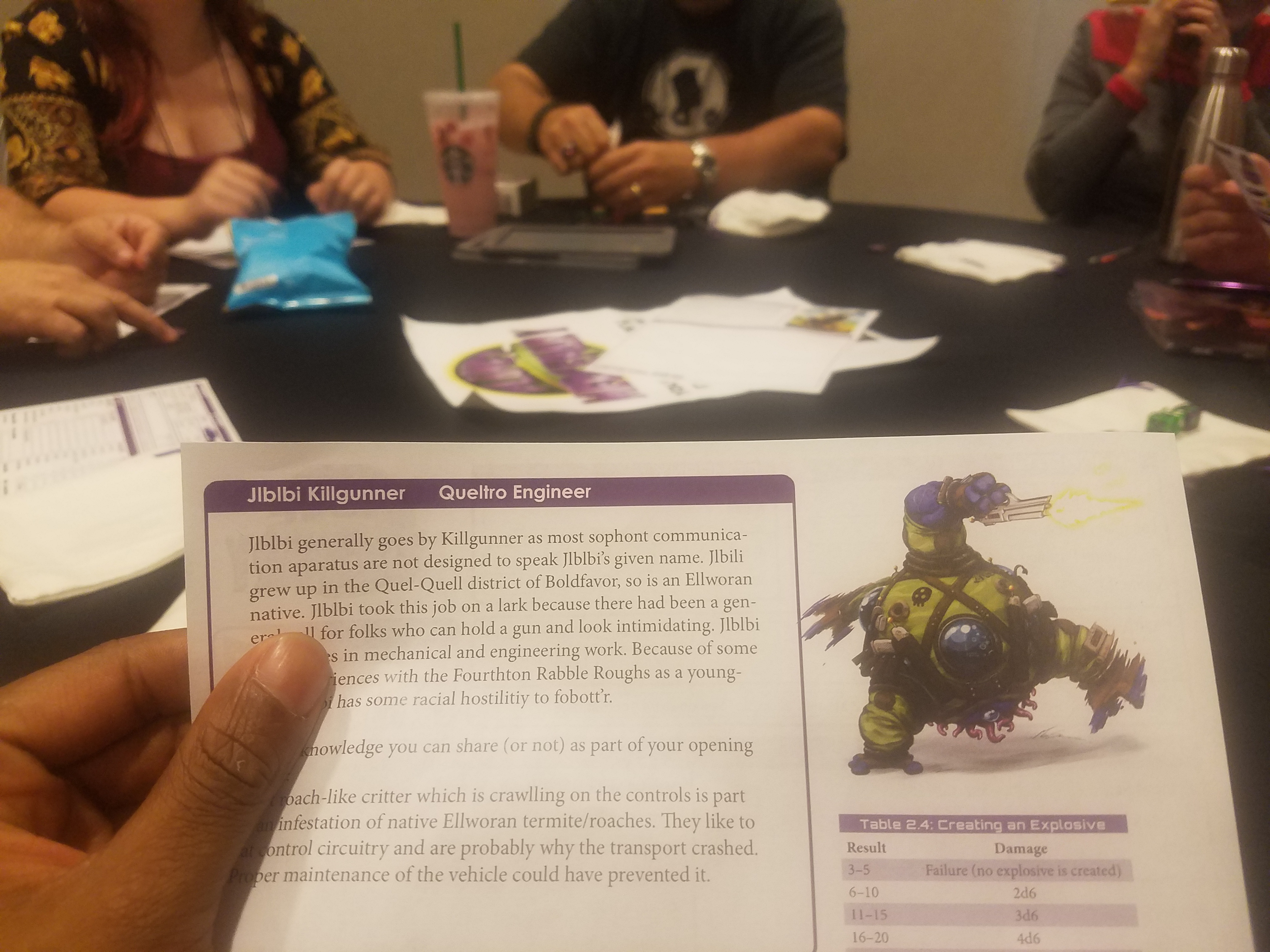 On Friday, I began the day with games. Becuase… games. First was the Pathfinder 2nd playtest where I got to play a goblin alchemist with a love of explosions. The game seems to have more tactical options in combat then its competitor D&D. Do I like it more then D&D? I’m not sure. I think I need another play session or two to really get a feel for it. I can say, however, that it is different enough that I think fans could possibly like both.