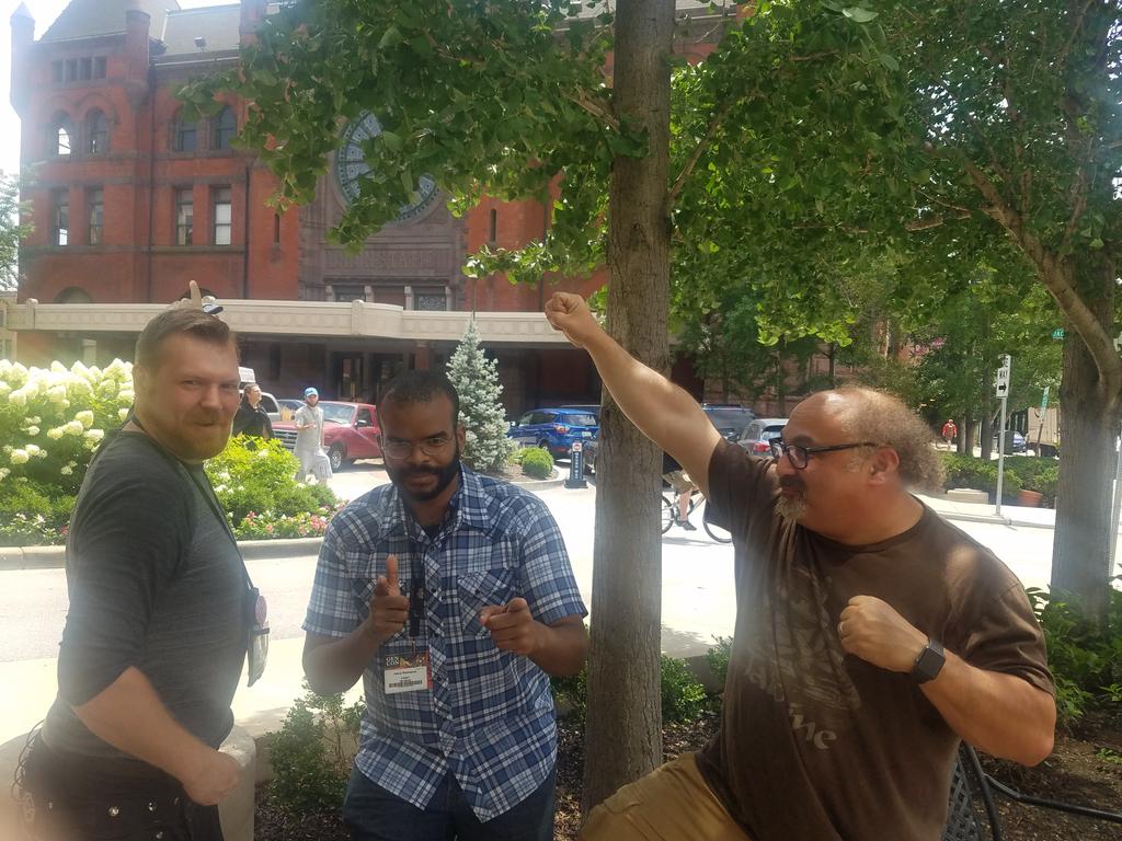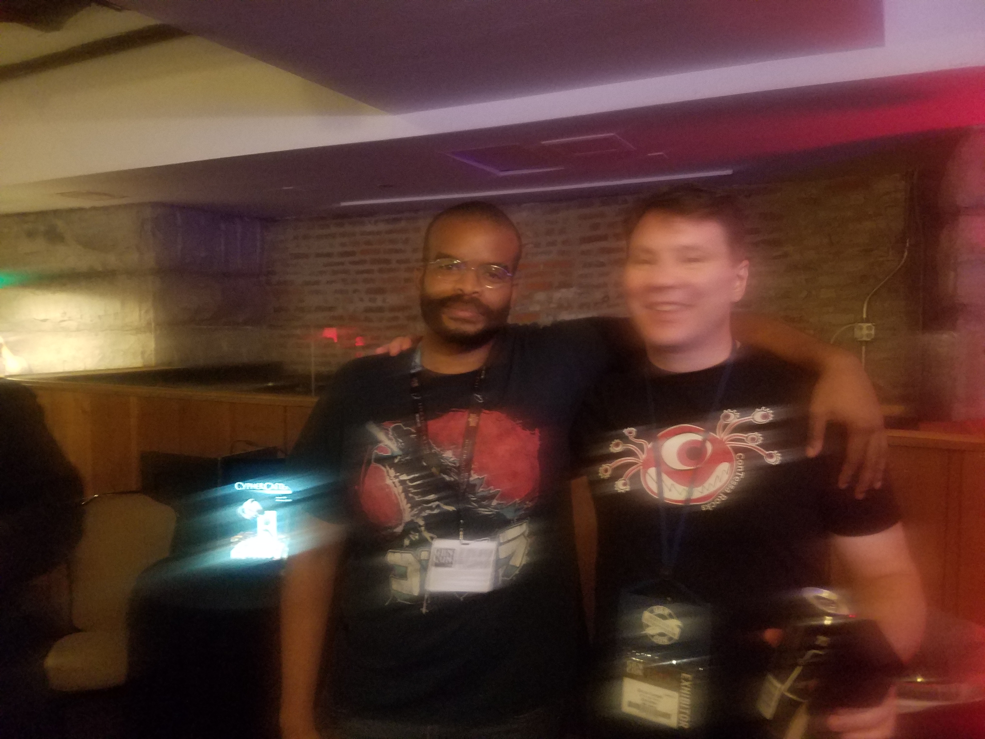 Then I headed down to a local pub to hang with the creative team of Monte Cook Games and cypher system fans to discuss our love of the system and play goofy party games. This was also where I got to meet up with Darcy Ross, Monte Cook, and Bruce Cordell (Who I asked for forgiveness for the drunken shenanigans of our Strange games!)