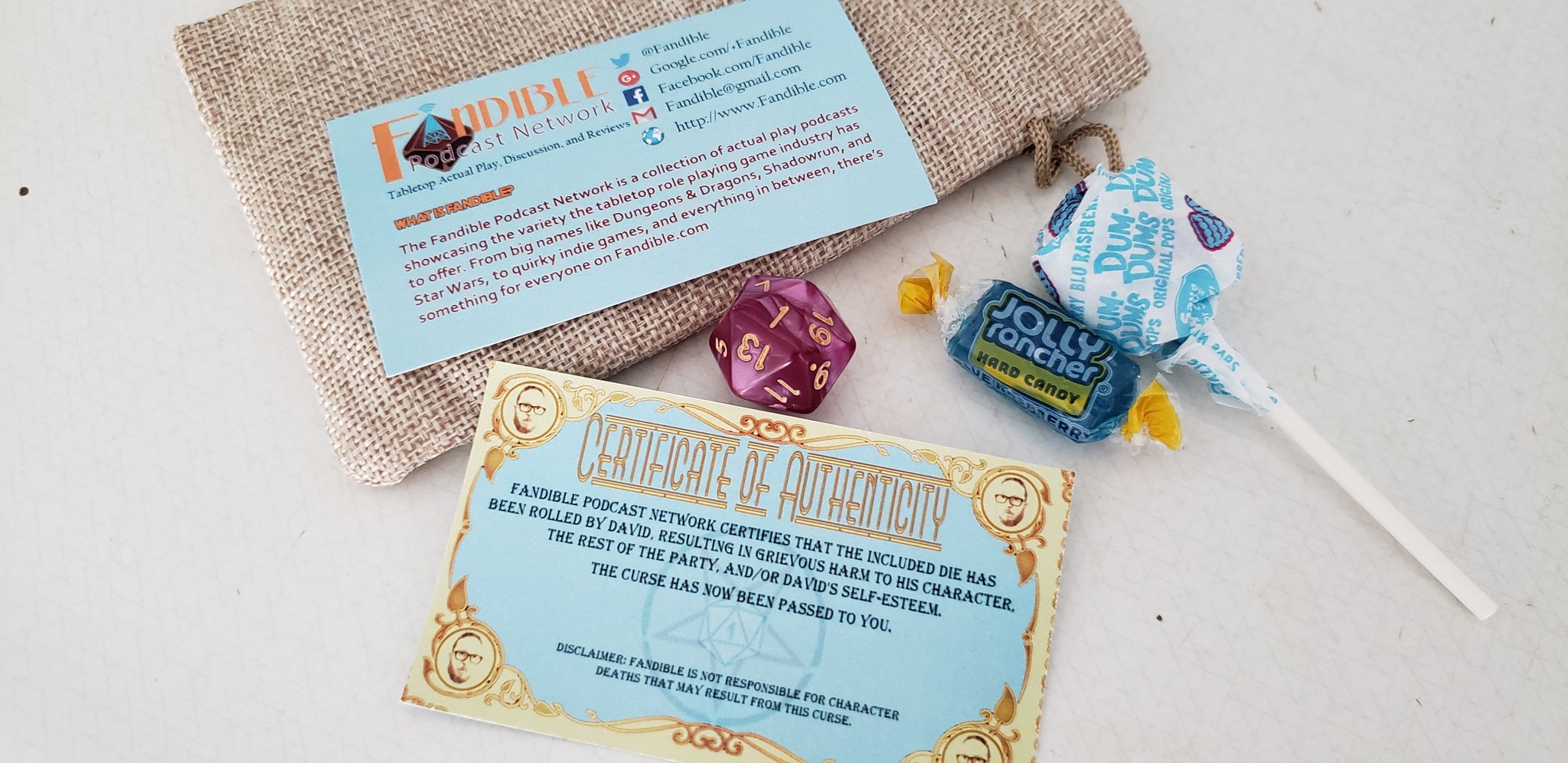 Then, the planning began. Trying to find an open hotel room in Indiana, figuring out which lucky dice bag to bring with me, and deciding what gifts to give to fans both new and old. Which was when we came up with the idea of the Fandible Goodie Bag. A little baggie full of Candy, Cards, and a CURSED DAVID DICE! Because if they like the good, they will have to accept the bad.