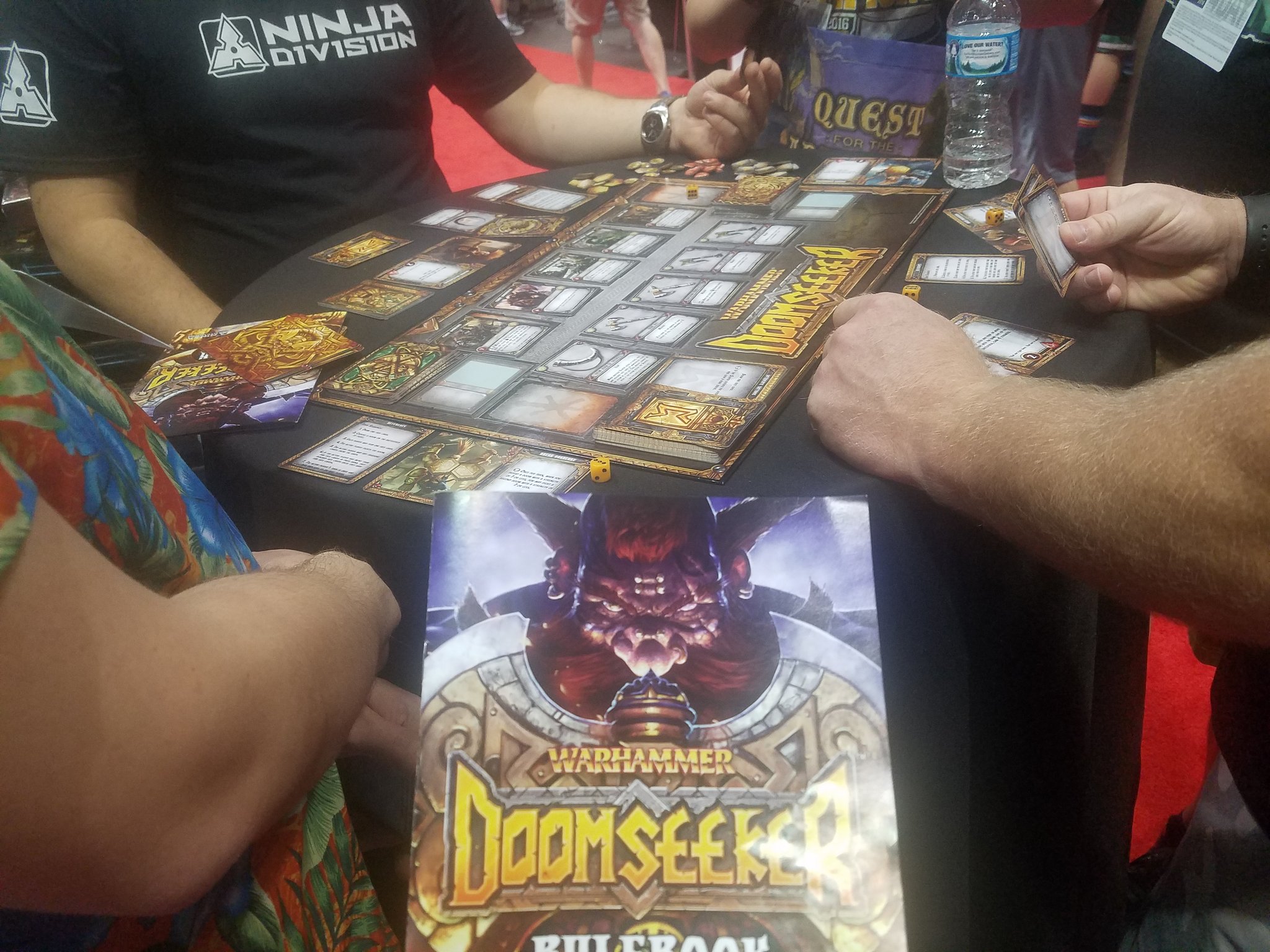 The next highlight was Doomseeker. A beer and pretzles game of Fireslayers seeking the greatest doom. The point, as you can guess, is to fight bigger and bigger monsters until you die heroically while hopefully getting more points then the other Fireslayers around you. There is also a gambling mechanic where you bet whether you or the Fireslayers around you will survive a particular combat. No we’re not talking about the same kind of wagering when online gambling in Texas. The game also allows for you to play cards to help or hinder the other players of the table. Gambling and violence – the perfect Dwarven game if there ever was one.