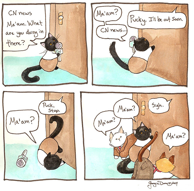 Many people find TV news to be unbearable and with some good reason. Don’t you sometimes wish you could turn those people with their false smiles and annoying conversations into cute adorable animals. Well, have I got a webcomic for you. Focused on a small group of adorable cats reporting on important household news around the home, this comic will help fill your much needed cuteness quota.